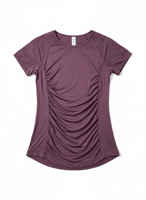SUNEDGE Women's Ruched Activewear Tee Short Sleeve Slim Fit Yoga Top with Side Gathering 96/4