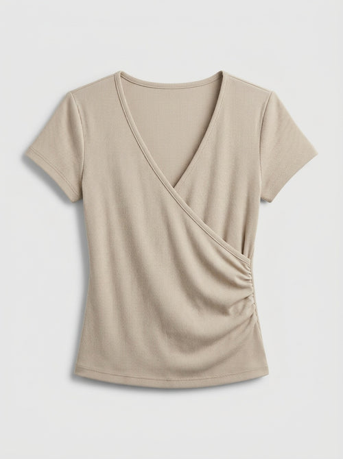 SUNEDGE Womens Double V-Neck Ribbed T-Shirt Slim Fit Cross-Front Casual Blouse